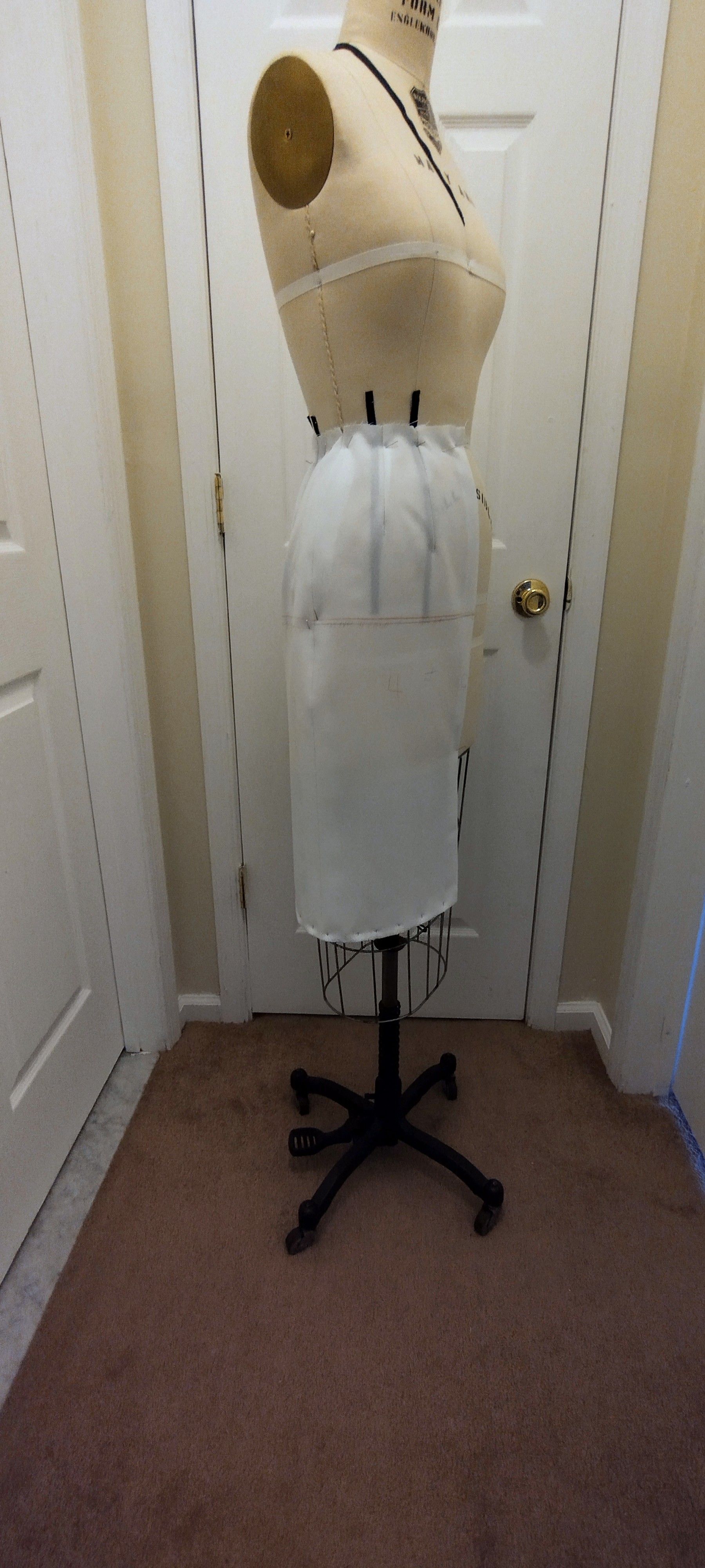 –The skirt length is 25-27″ for typical 1950s fashions. Add a two inch hem for the fitting shell.