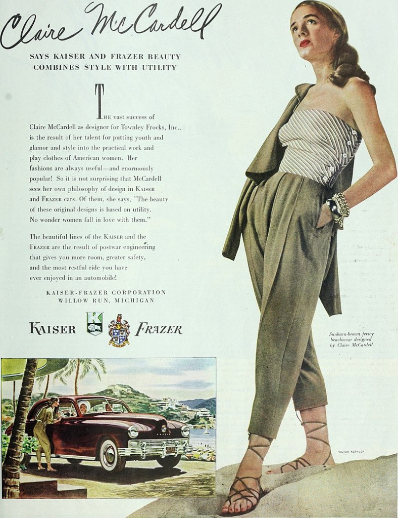 Her palazzo pants, in medium-weight crepe, flow with theatrical grace. From a distance, they resemble a long skirt, emphasizing movement that is both dramatic and serene.